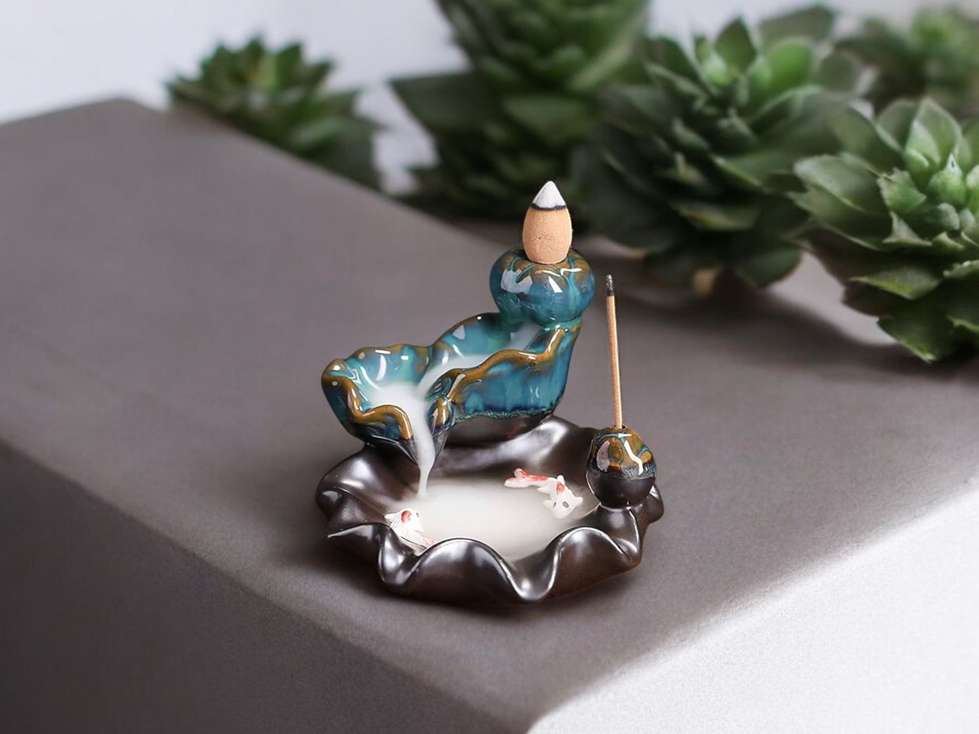 Thác Khói Trầm Hương Sen Xanh 2 Cá Chép GK09 – Phong Thủy Tài Lộc